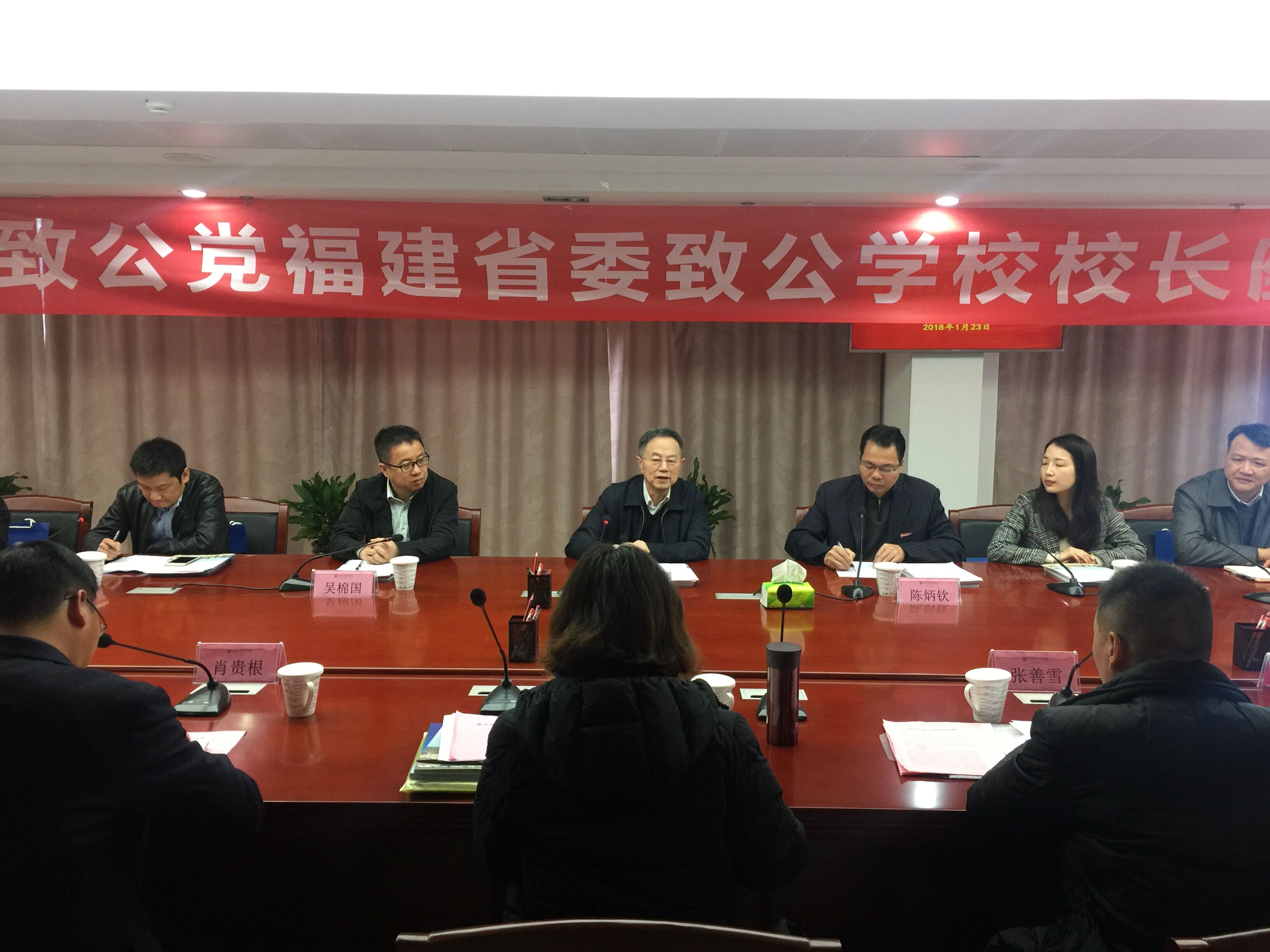 1月23日,致公党福建省委实施教育帮扶项目实训基地在我校揭牌。省政协副主席、致公党省委主委薛卫民,致公党省委专职副主委吴棉国,致公党省委秘书长王惠忠,我校名誉董事长吴钦明、董事长吴新星、党委书记陈炳钦等出席了揭牌仪式。致公党省委机关相关人员、各设区市委社会服务工作负责人、致公学校负责人、公益组织代表和致公党开元网站登录入口支部等50多人参加了座谈会。致公党省委秘书长王惠忠主持仪式和座谈会。