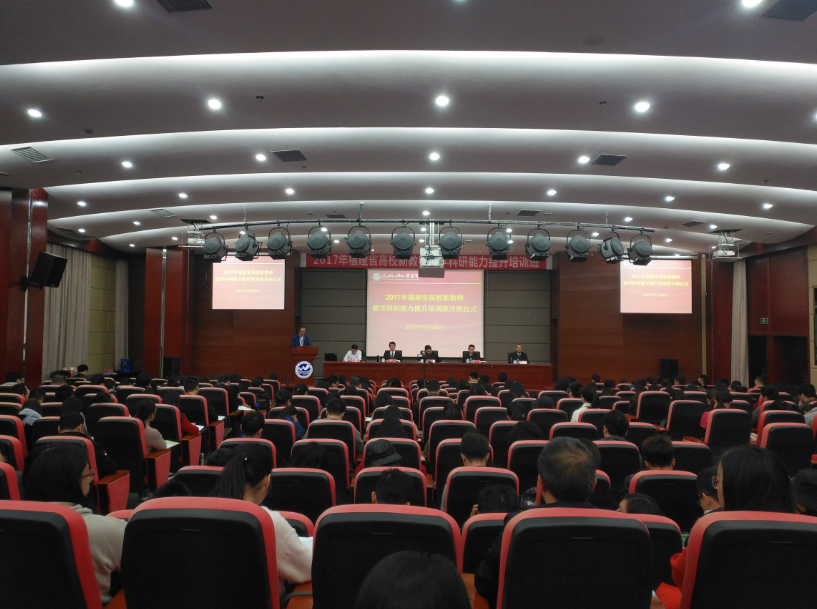 11月24日,由省教育厅主办,省高等学校师资培训中心承办,我校协办的2017年福建省高校新教师教学科研能力提升培训班在我校学术报告厅开班。省教育厅教师工作处副处长郑芳芳,省高等学校师资培训中心常务副主任陈振祯博士,我校党委副书记、副校长徐国立副教授及来自全省87所高校的152位学员参加了开学仪式。上海应用技术大学校长、博士生导师陆靖教授应邀出席开学仪式,并在仪式结束后为全体学员做了精彩的报告。