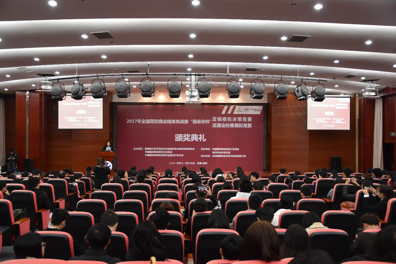 11月19日,由教育部高等学校经济与贸易类专业教学指导委员会、中国国际商会商业行业商会、中国国际贸易促进委员会商业行业分会联合主办,中国国际商会商业行业商会、我校承办,深圳国泰安教育技术股份有限公司独家技术支持的2017年全国精英挑战赛“国泰安杯”流通业经营模拟竞赛&营销模拟决策竞赛在我校圆满闭幕。