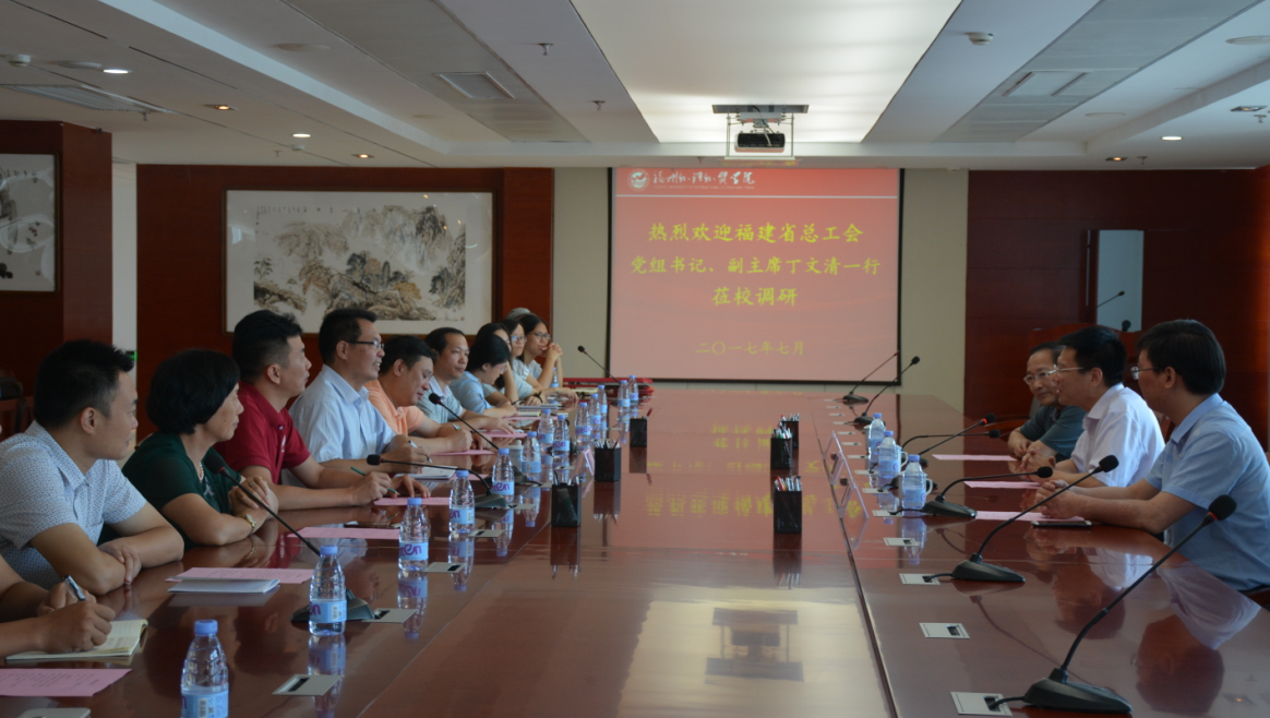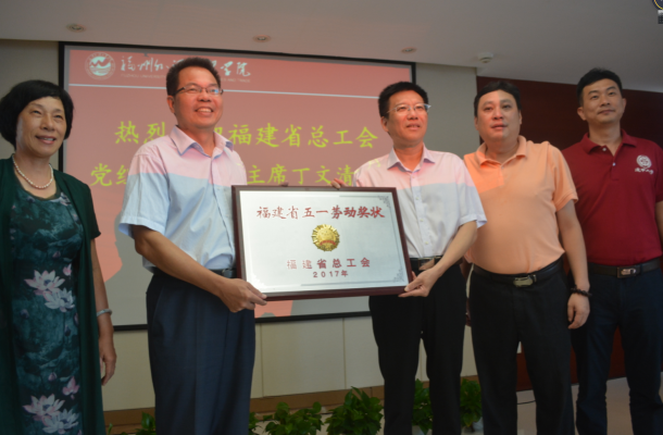 7月14日,福建省总工会党组书记、副主席丁文清,福建省教科文卫体工会工委调研员江发林,福州市总工会党组书记、副主席郑湘国等莅校为我校“福建省五一劳动奖状”和我校教学发展中心“福建省五一先锋号”授牌。我校党委书记陈炳钦、各中心负责人、各部门工会主席、教师代表参加了颁发活动。