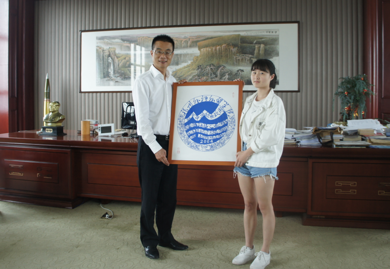 4月25日,来自美术与设计系所属的星辰书画艺术工作室的部分成员组成的创作团队,由王玉婷领衔,苏鑫伟、黄子珊和郑莹共同协助参与完成的创意剪纸献礼我校13周年华诞,董事长吴钦明先生欣然接受了同学们的礼物,感谢同学们热爱学校的情怀,勉励大家要不忘初心,深刻体会、传播和践行学校的优良传统和办学精神。