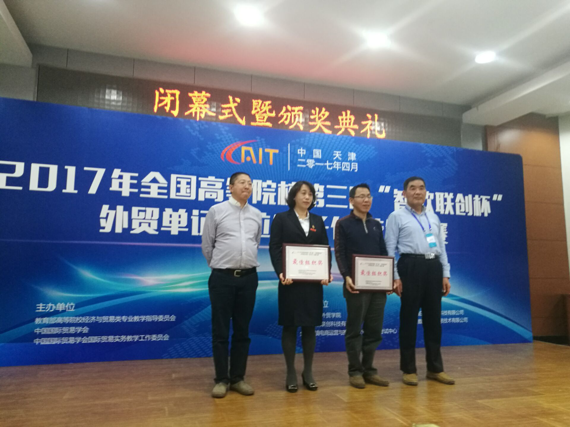 我校2014级国际经济与贸易专业学生苏越婷、朱瑛(2014级精英班)、郑轩宇、林丹丹(指导老师:黄丽华)荣获团体奖一等奖,2014级国际经济与贸易专业学生王惠娟、张小菲、张凌英、李小钰(指导老师:莒萍)荣获团体奖二等奖,2016级国际经济与贸易专升本学生李刚、许静、郭瀚扬及2014级国际经济与贸易专业蔡朱颖(指导老师:冼先品)荣获团体奖二等奖,2014级国际经济与贸易专业学生纪玫君、张文琳、袁烈姿、林丽云(指导老师:王华玲)荣获团体奖三等奖,2014级国际经济与贸易专业学生谢思宇、郑勇、饶昕玥及2015级国际经济与贸易专业郑文燕(指导老师:熊睿卿)荣获团体奖三等奖,另有2014级国际经济与贸易专业王惠娟、朱瑛(2014级精英班)、苏越婷、林丽云及2016级国际经济与贸易专业李刚5位同学荣获个人一等奖,2014级国际经济与贸易专业蔡朱颖、郑勇、林丹丹、谢思宇、纪玫君、张凌英以及2016级国际经济与贸易专业许静7位荣获个人二等奖。我校参赛团队还获得团体最佳组织奖一项。