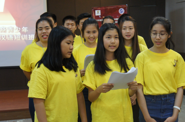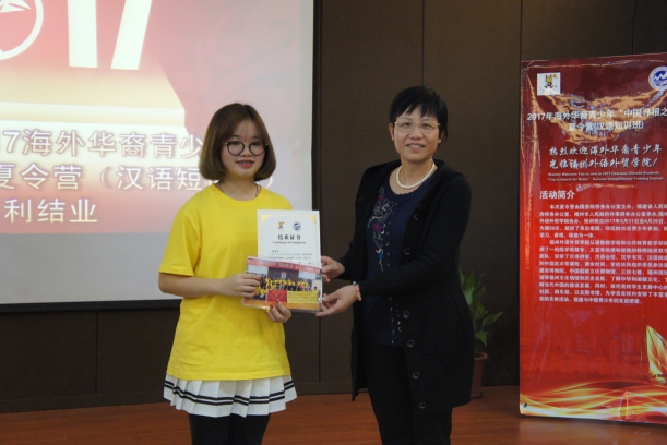 38名营员们在闭幕式上用汉语表演了歌曲演唱、诗歌朗诵、配音会话,展示了剪纸、武术等中华传统才艺,他们的表演精彩纷呈,赢得了阵阵掌声。省市侨办和我校领导为营员和授课教师颁发了证书,为营员们显著的进步由衷地感到高兴。闭营之际,营员们与朝夕相伴的老师和志愿者们依依作别,营员们纷纷表示:“一定要再回中国,再回福州,一起再回家。”