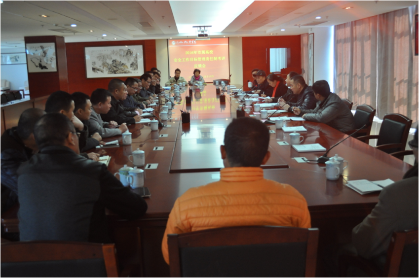 12月16日,由省公安厅国保总队王敏珍副支队长为组长的2016年市属高校安全目标管理责任制考评组一行7人莅临我校考核评估。