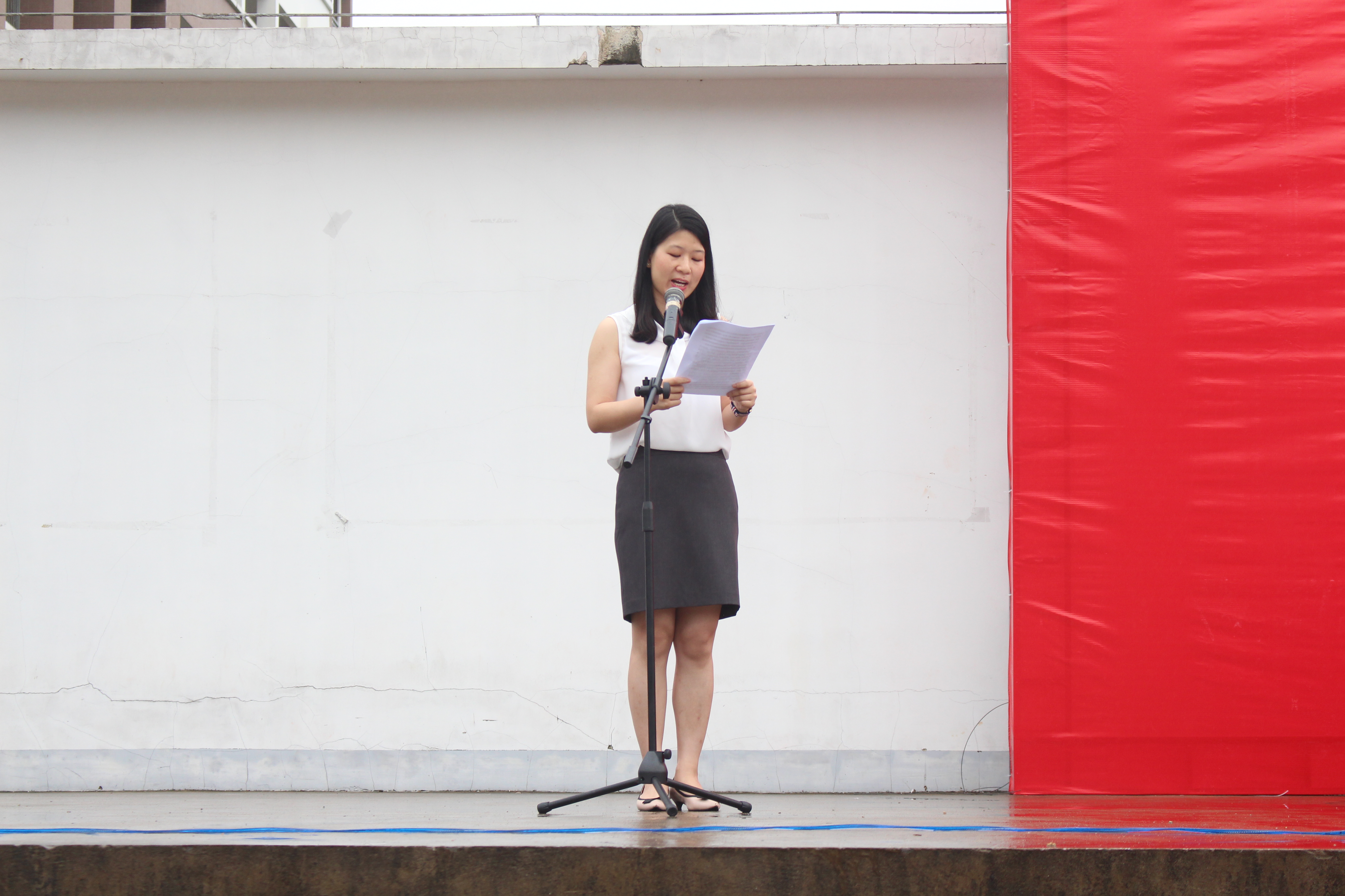 随后,教师代表江晓珍发言。面对充满朝气的刚入学的同学们,她倍感激动。作为老师,她对新生们提出了期望,她代表全体教师承诺将秉承学校的大爱精神,为同学们搭建起遮风挡雨的脊梁,铺设一条走向成功的道路。