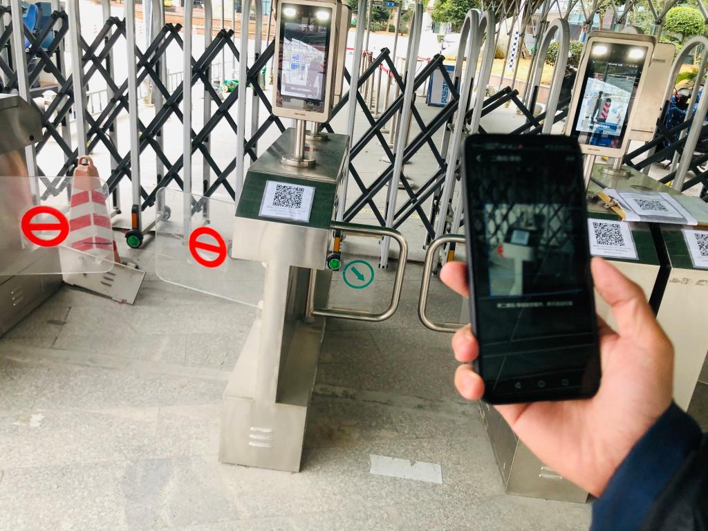 扫码结果生成绿色可通行,生成红色不可通行。(如图所示)