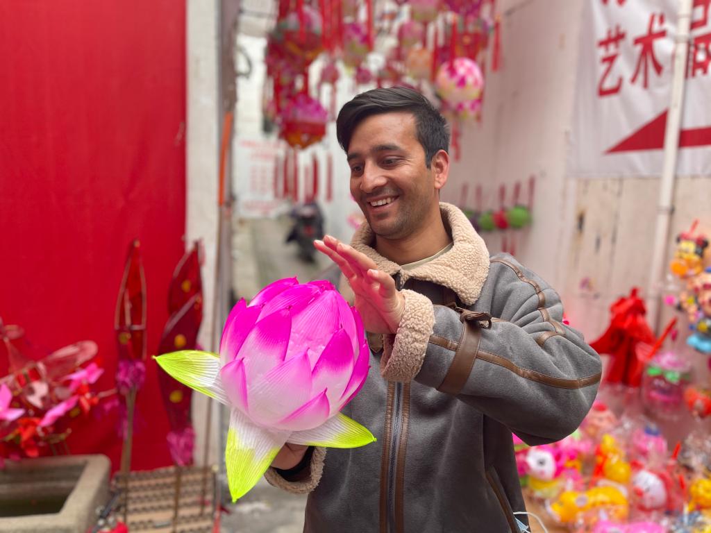元宵节花灯让来自尼泊尔的留学生博朗联想到了家乡的灯节,他认为即使文化背景不同,但人们通过一盏盏明灯来祈求幸福生活的情感是共通的,他表示:“我一直以来对中国文化和汉语都很感兴趣,今天能来到这里(福州三坊七巷)体验中国传统文化,感到非常的高兴。”