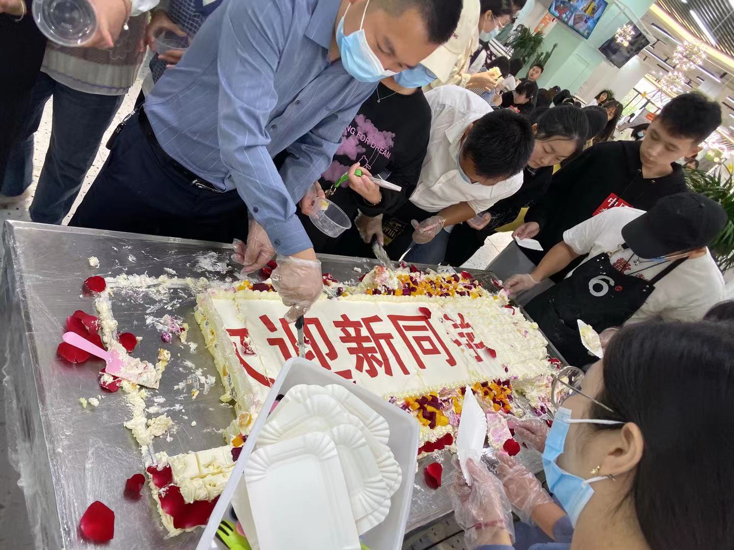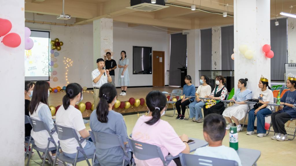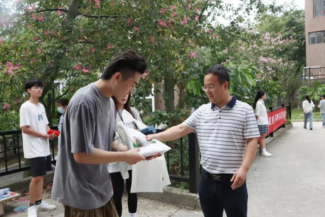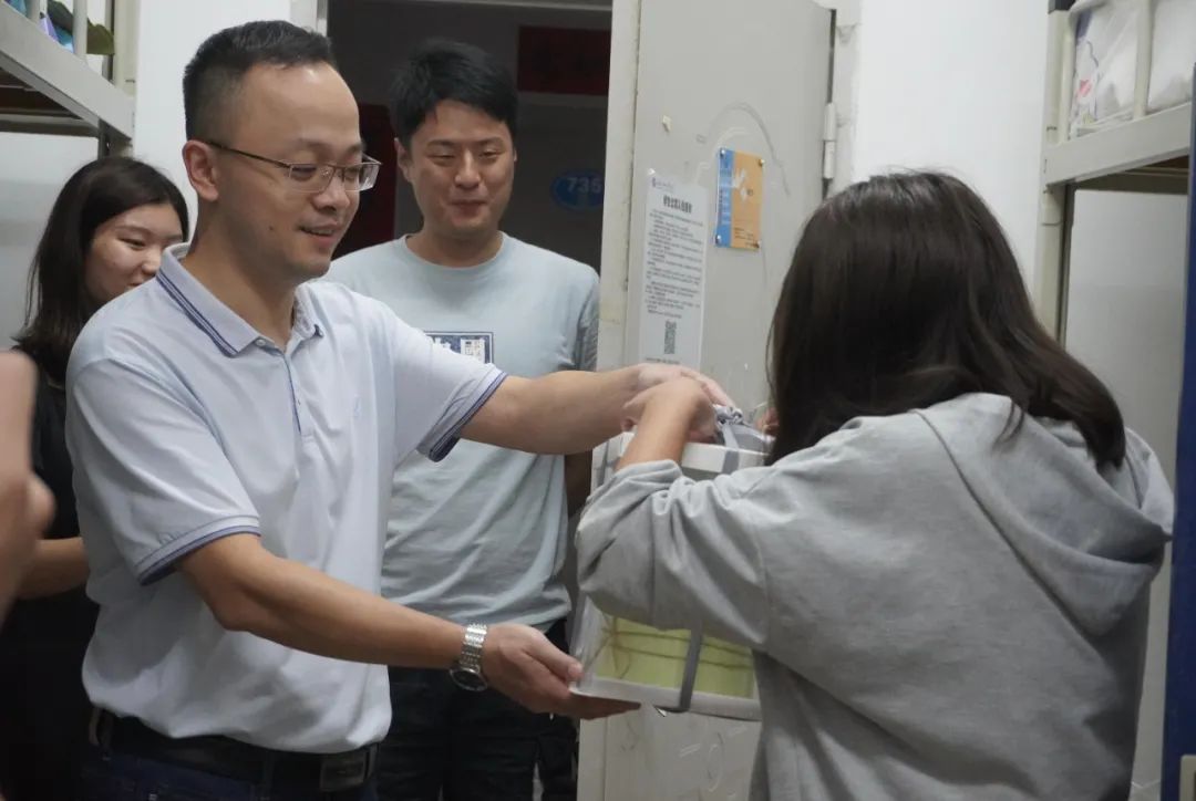 学校的师长们来到宿舍区域,看望安顿好的新生,慰问参与迎新工作的志愿者们。教育学院还为报到当日生日的新生举行了集体生日,一场温情欢乐的“破冰”活动,迅速拉近了新生和师长们之间的距离。