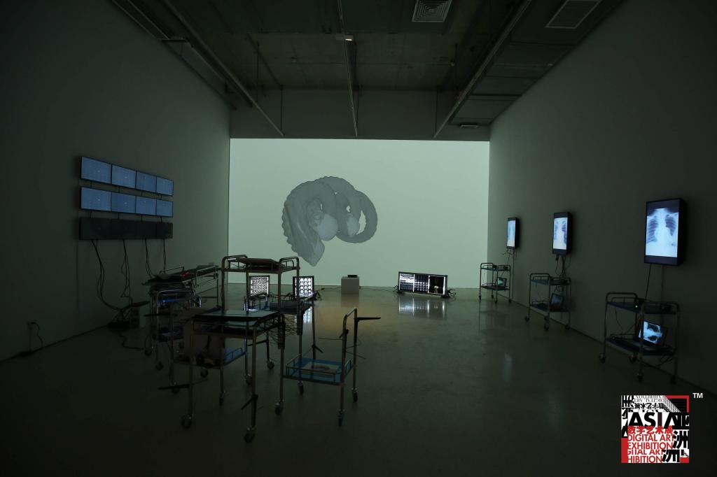 该作品把医学影像技术运用到了艺术品当中,加入了AR技术,体感互动技术,心跳传感技术,创造了“患者”与家人之间的对话。提供了在医疗过程中的一种人文情感。
