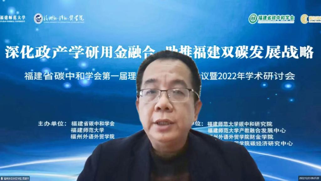 12月23日,由福建省碳中和学会、福建师范大学和我校主办,福建师范大学碳中和研究院、福建师范大学产教融合发展中心、我校财金学院和碳经济研究中心承办的福建省碳中和学会2022年学术研讨会暨碳中和政产学研用金融合发展高峰论坛在福州举行。中国科学院院士焦念志,加拿大皇家科学院院士陈镜明,福建师范大学副校长陈庆华,我校执行校长黄建平,福建师范大学、我校相关职能部门负责人,福建省碳中和学会理事、部分会员代表,碳中和行业企业家代表和新闻媒体参加了相关活动。开幕式由福建省碳中和学会秘书长黄志群教授主持。