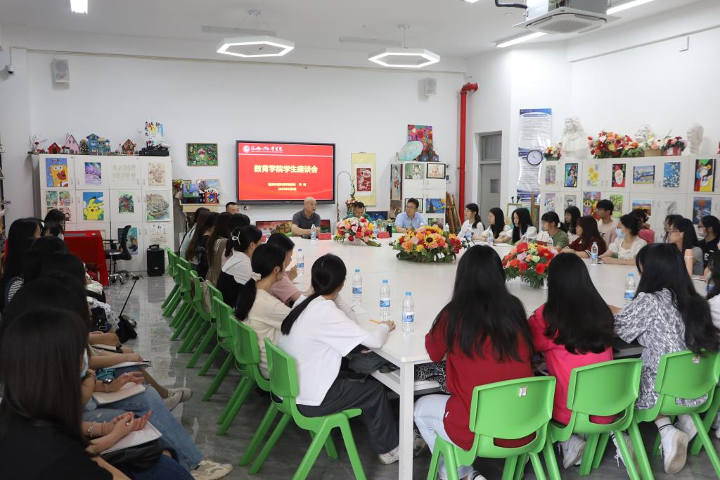 6月8日,我校召开“学习贯彻习近平新时代中国特色社会主义思想主题教育”学生座谈会。校长、党委副书记许明,党委办公室、学生工作部、教学发展中心负责同志及教育学院2020级学生代表参加座谈会。