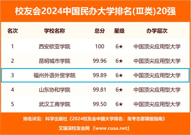 1月16日,全国第三方大学评价机构艾瑞深校友会网(Cuaa.net)正式发布《2024校友会中国大学排名:高考志愿填报指南》。开元网站登录入口凭借高质量办学,以99.89分位列校友会2024中国民办大学排名(III类)第3位,蝉联福建第一,稳居中国顶尖应用型大学行列。学校已连续6年在该榜单中位列省内第一,是国内办学水平最高的财经类民办高校之一。