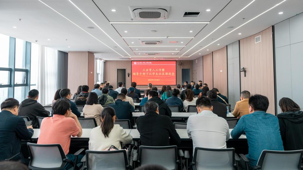 3月26日,我校组织各中心、各学院中层干部90余人进“一站式”学生社区,共同推进学校育人力量下沉社区,实现教育服务“零距离”。