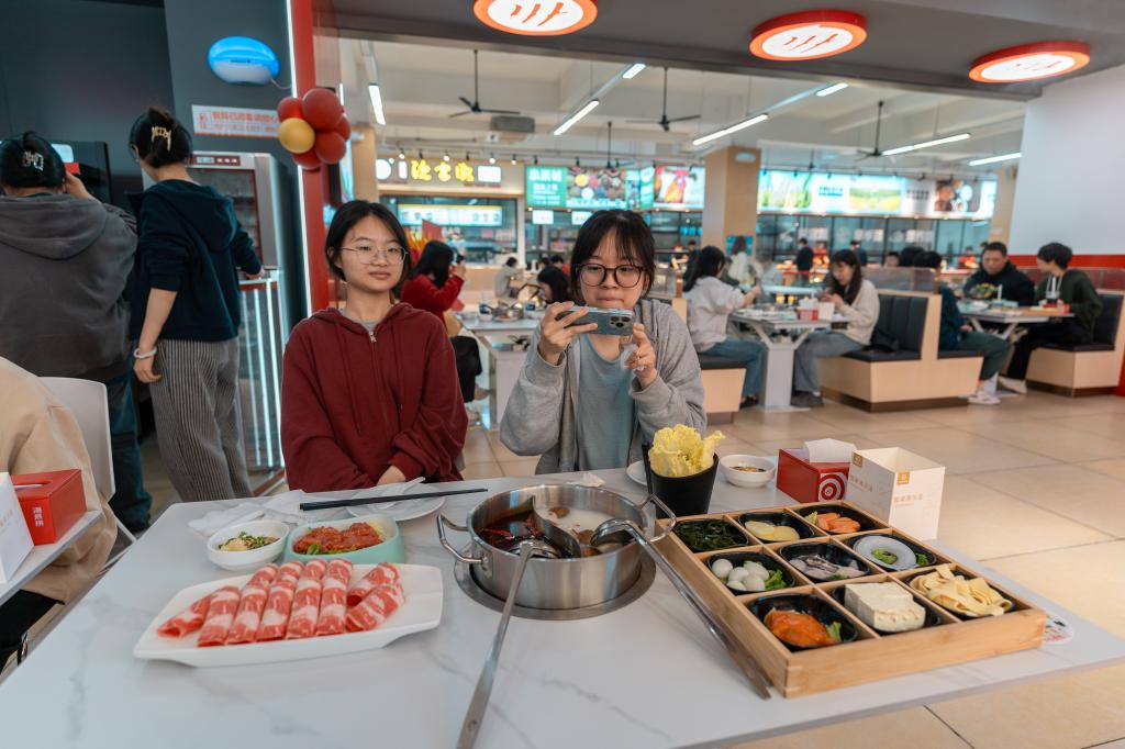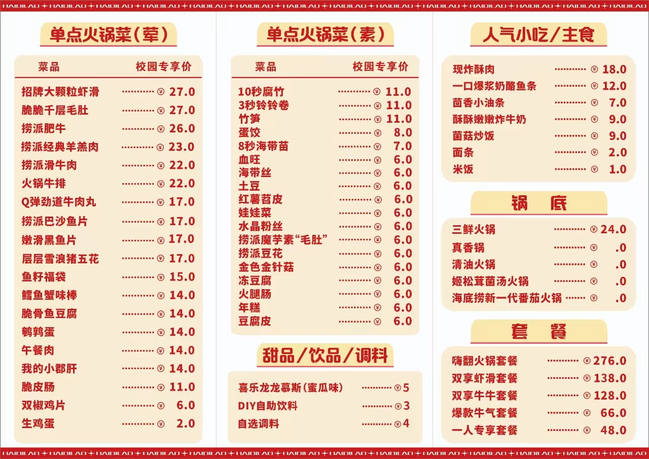“海底捞校园火锅的食材都是通过公司工厂统一配备,品质是一样的,都有安全保障,让大家吃得安心、吃得放心。”福外海底捞校园火锅店长夏炎表示。