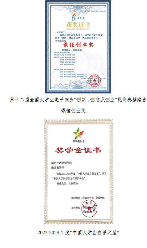 2.报道标题:点赞!这两位福外学子获评2023年福建省大学生“创业之星”
