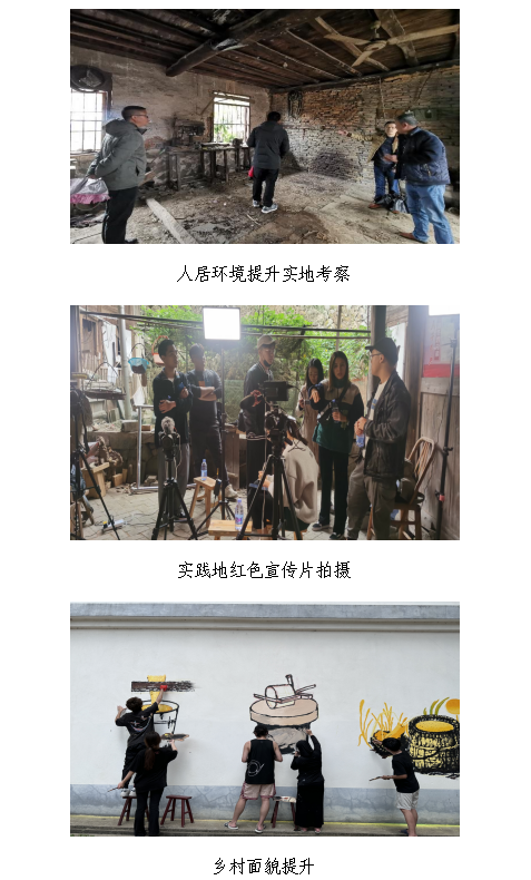 项目紧扣支部专业特色,最大化发挥党员们自身的专业特长。在柘荣县富溪镇的实践中,项目完成实践地人居环境提升设计,包括富溪茶寮设计、归驷桥景观提升、近600㎡主题墙绘、富水园设计、无人超市智慧系统设计、人才楼设计及智慧系统设计、岭后村观景台设计、沿溪夜景设计、民居外立面改造设计、沿街骑廊设计、生态可持续性公共厕所设计、议事厅景观公园设计、富溪邮局设计、岭后村村标志设计、闲置房屋改造设计等。在拍摄富溪宣传视频时,运用广播电视编导专业独特的创意、专业的手法,充分展现出富溪镇古街环境、质朴的人文风情,很好地展示出富溪历史文化的丰厚底蕴;在进行当地文创产品设计时,结合当地特色文化背景构思出新的设计体系和理念,通过创意设计,将乡村特有的自然景观、风土人情融入作品中,突出乡村文化特色,从包装设计唤醒当地产品新活力,助力当地产品经济发展。