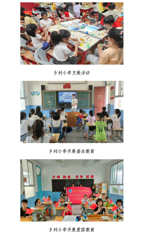 (1)乡村振兴+宣讲。项目在实践地进行教育帮扶、民情收集、当地调研、产品设计等志愿服务的同时,围绕党的二十大精神、社会主义核心价值观、乡风文明、乡村振兴、心理健康等主题进行宣讲,一举两得。