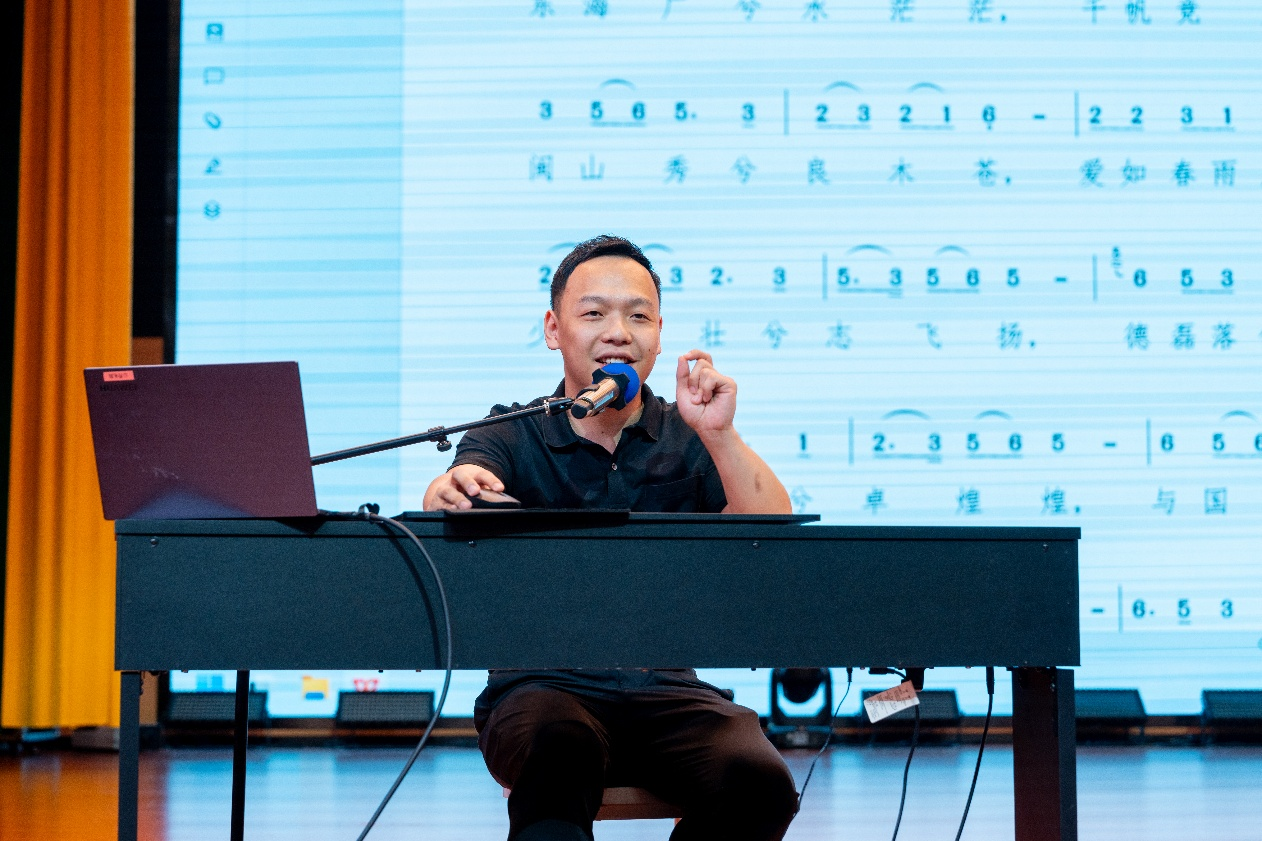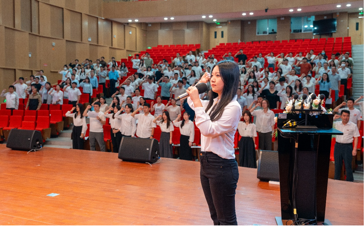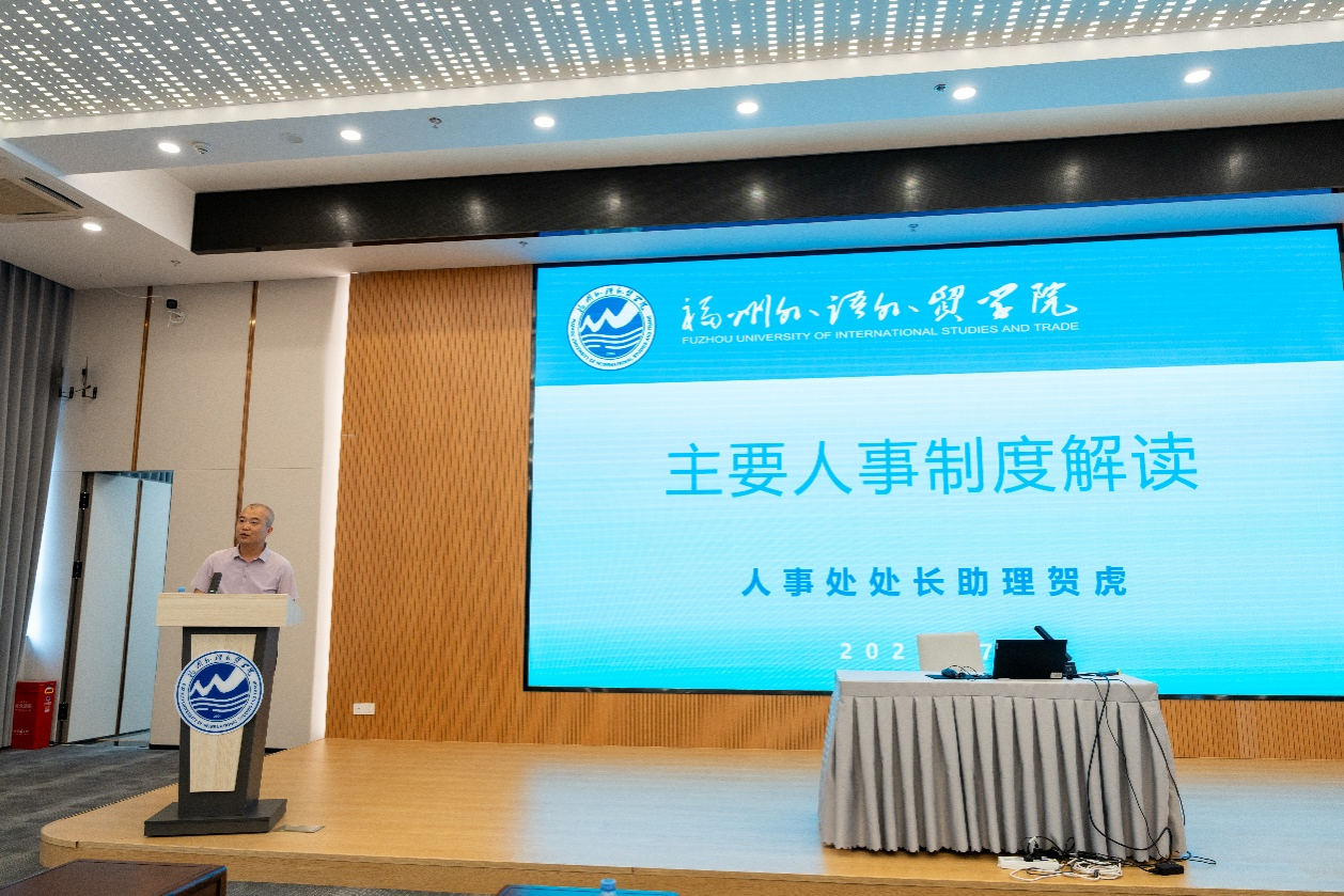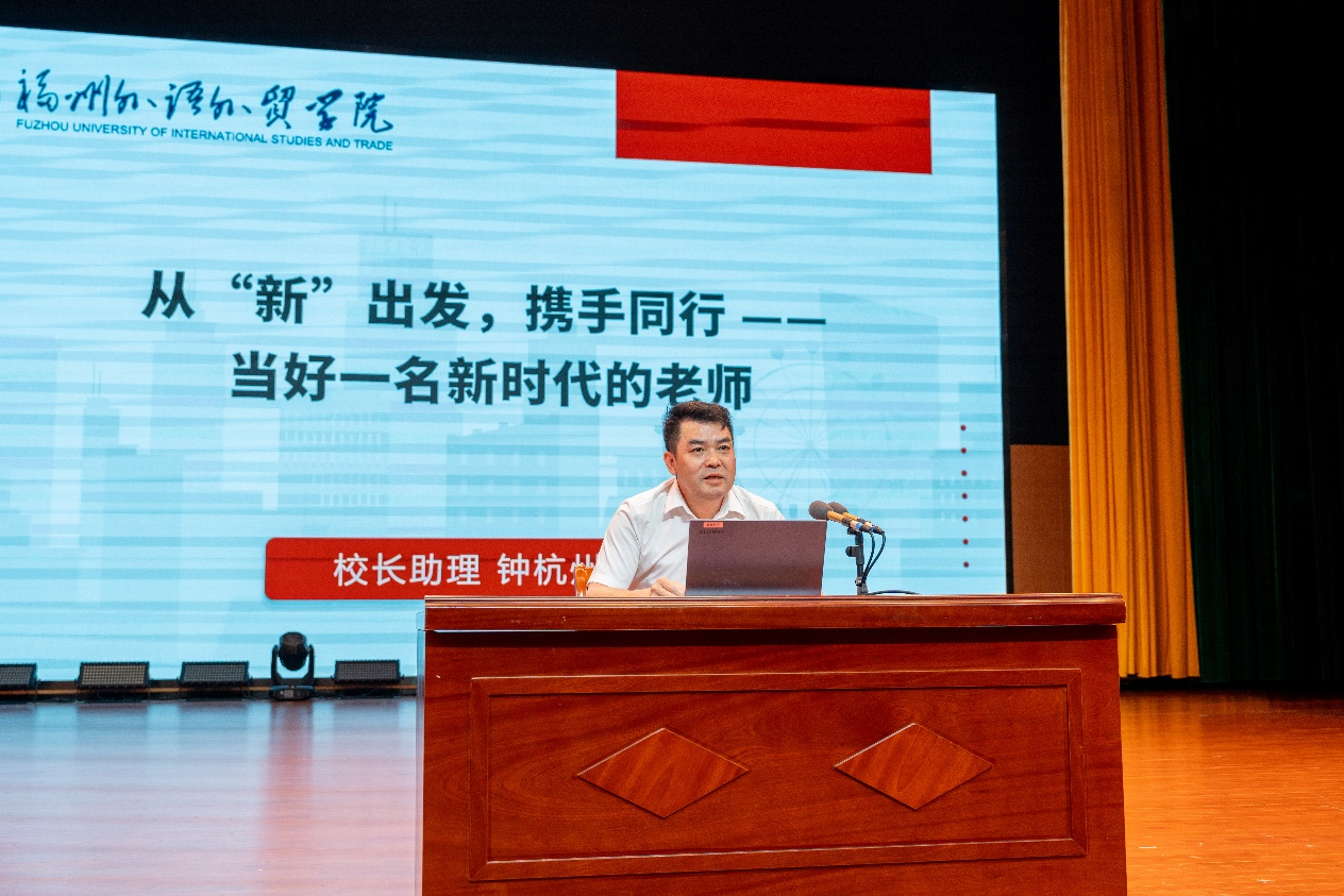 校长助理钟杭州代表学校对新入职教职工的到来表示欢迎,并作了《从“新”出发,携手同行——当好一名新时代的老师》专题讲座。