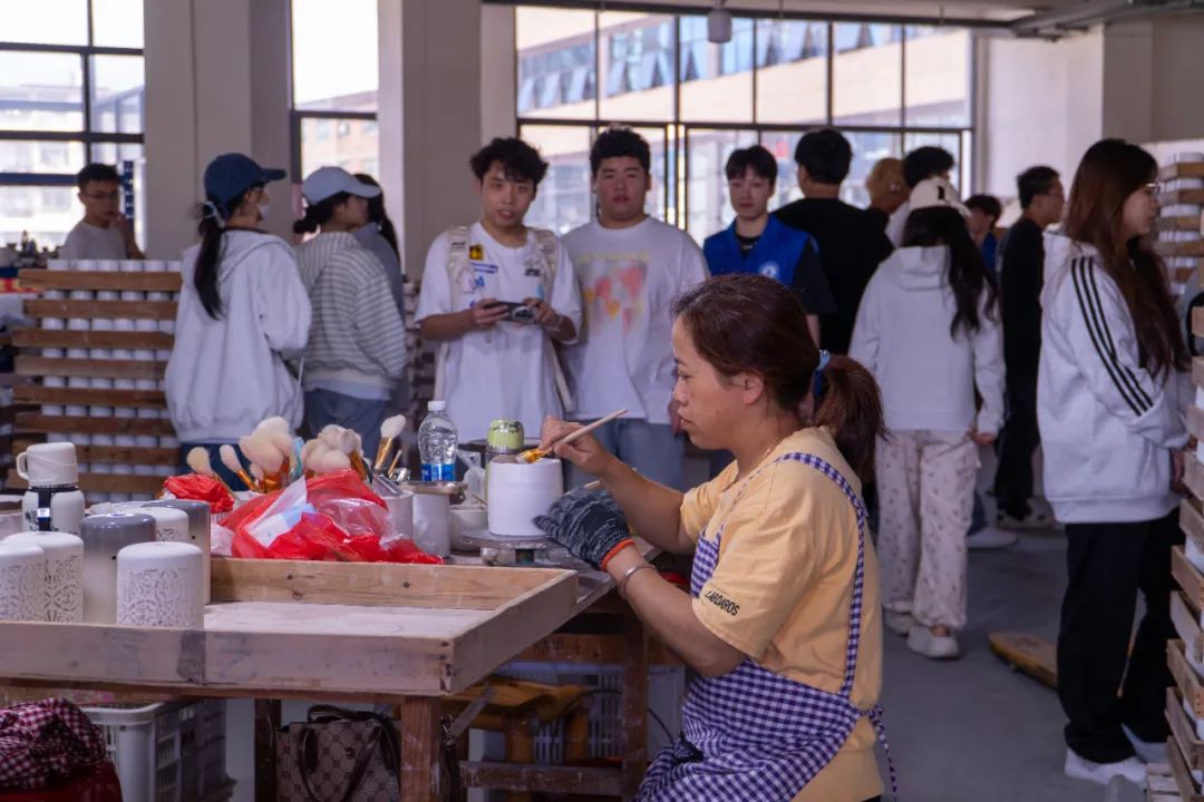 实习期间,同学们实地参观了泉州顺美集团、同鑫陶瓷、臻峰陶瓷、新博龙陶瓷等陶瓷行业标杆企业,以及中国茶具城、瓷花仙子文化中心等文化地标,亲眼见证了德化陶瓷产业从传统制造向智能制造、文化创意的转型升级。在这实践过程中,通过“教师-业师-匠师”三位一体的教学模式,让同学们对“产、学、研、转、创、用”的内涵有了深刻理解。