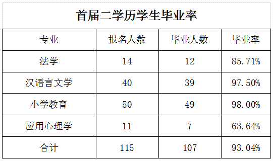 经统计,二学历专业考试通过率达90.18%,连续5个考期远高于全省通过率。随着本次考试结束,我校首届二学历毕业数据新鲜出炉,首届21级以上报名115人,可申请毕业人数107人,毕业高率达93.04%。