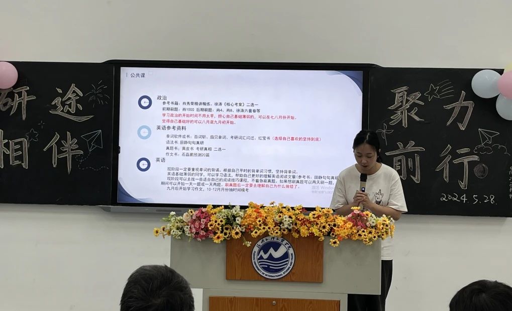 考研指导江斌老师动员讲话,明确考研是学生提升自身综合素质、增强就业竞争力的重要途径,对于个人成长和职业发展具有重要意义。坚定了同学们考研的决心,对考研的计划更加明确,对成功考研更有信心。