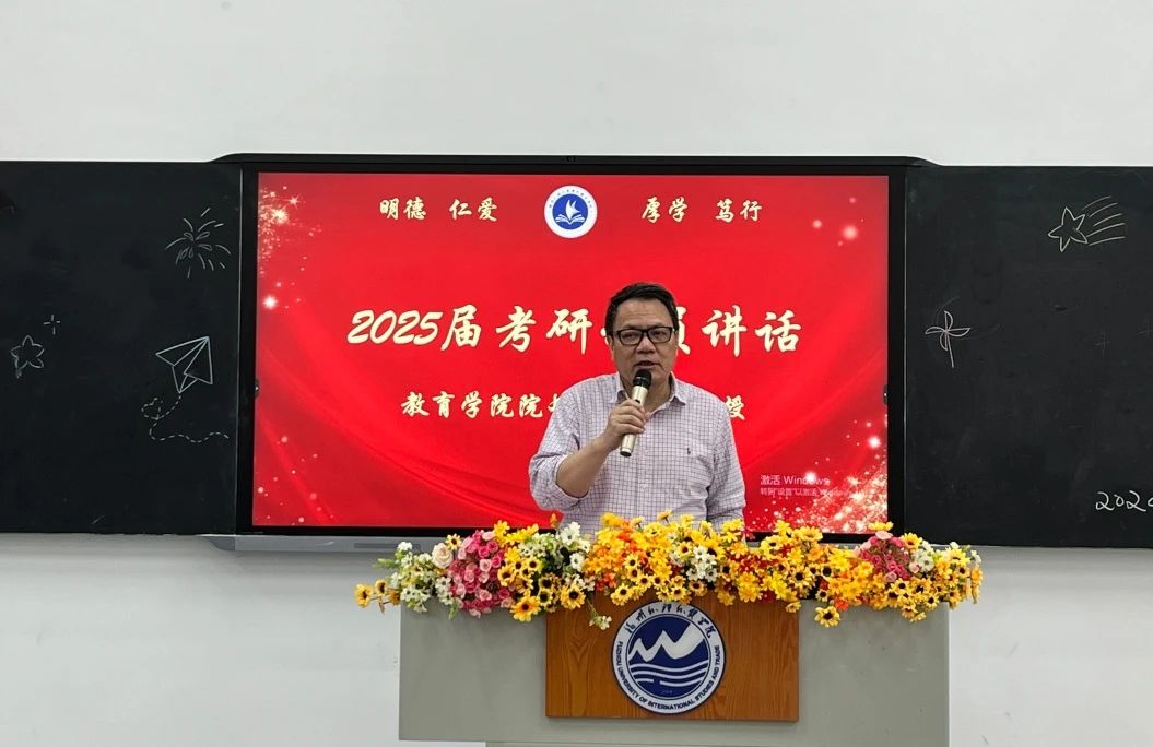 教育学院院长林新年教授为考研学子们作动员讲话,详细分析了学院近年的考研情况及就业形势,对同学们提出了殷切期望和积极鼓励。院长以自身的经历及角度,为同学们提出了三点建议。