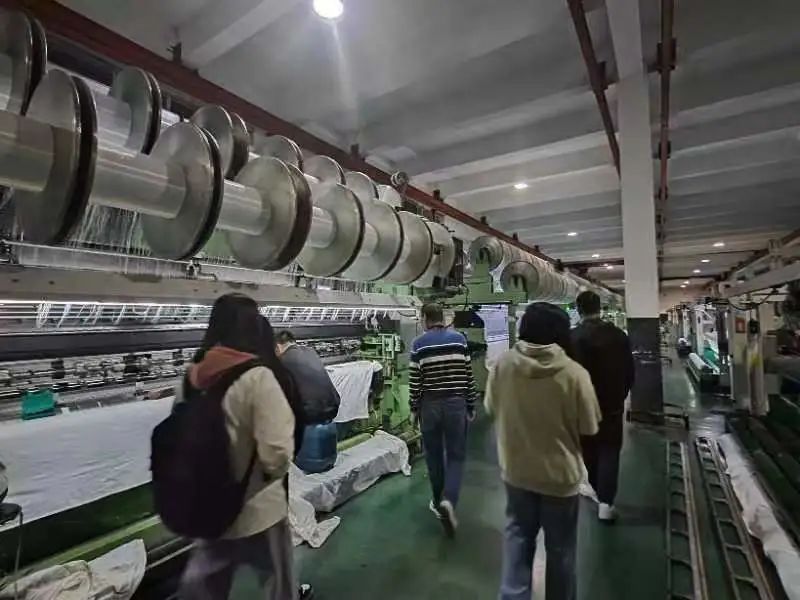 在本次企业实地学习中,林景春老师和课题小组成员在企业各负责人的带领下,进入纺织物生产车间学习更为详细的纺织物相关知识。