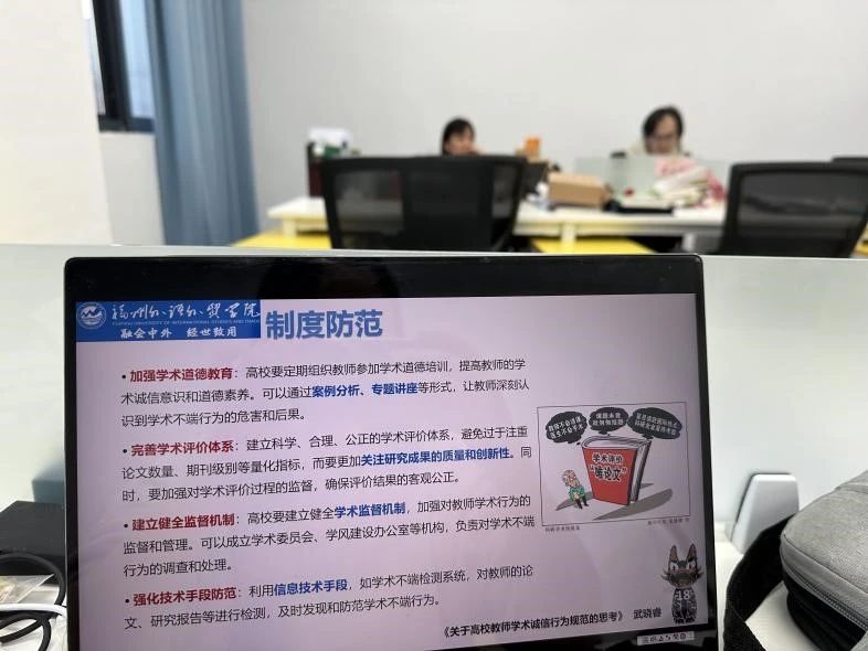 在活动中,武老师还详细阐述了学术诚信的内涵,明确了哪些行为属于学术不端,并就如何防范学术不端提出了具体建议。他鼓励教师们要坚守学术底线,秉持诚信原则,共同维护学术界的纯洁与尊严。此次活动不仅增强了教师们对学术诚信的认识和理解,也为他们今后的学术研究和教育教学工作提供了有益的指导和借鉴。