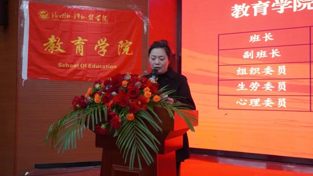 教育学院团委书记修丽萍老师宣读《共青团开元网站登录入口教育学院委员会关于2023级本科、专升本各班级学生干部任命的决定》
