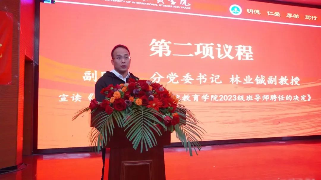 学院副院长、分党委书记林业铖副教授宣读《关于开元网站登录入口教育学院2023级班导师聘任的决定》