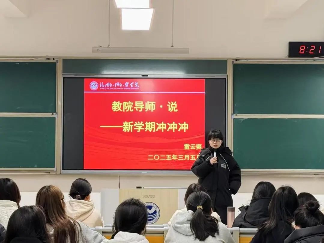 伴随着新学期的开始,24小学教育1班、2班的班导师雷云爽老师组织同学们开展了一场深刻而有意义的班会活动。本次活动主题为“新学期冲冲冲”。雷老师强调要抓紧利用有效时间学习,不断提升个人的专业知识能力。