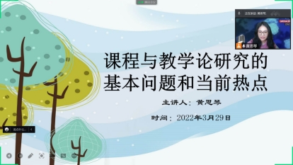 为进一步提高教育学院学生科研创新能力,更新课程教学理念,3月29日下午,教育学院黄思琴老师通过腾讯会议平台,开展“课程与教学论研究的基本问题和当前热点”线上专题讲座,讲座主要面向教育学院小学教育专业全体学生。