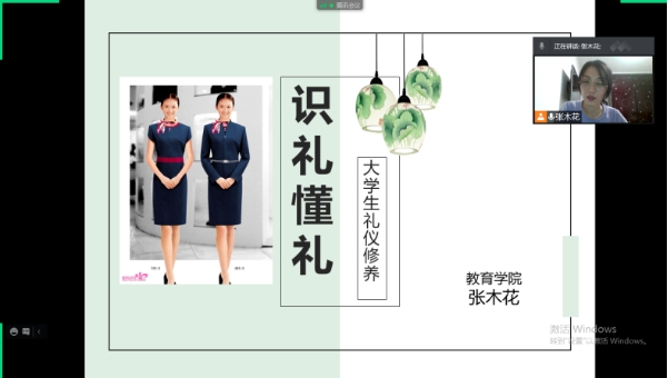 此次讲座从三个部分展开:礼仪的由来、礼仪模块与原则,分解礼仪运用场景。张老师先从一个礼仪训练短视频展开,让同学们知道礼仪是需要训练的。再分解礼仪在生活中的运用,着装礼仪;仪容、仪表、仪态礼仪;见面礼仪(称呼、握手、介绍、名片递送),并与线上同学展开讨论与简单互动,同学们表示此次讲座很实用。