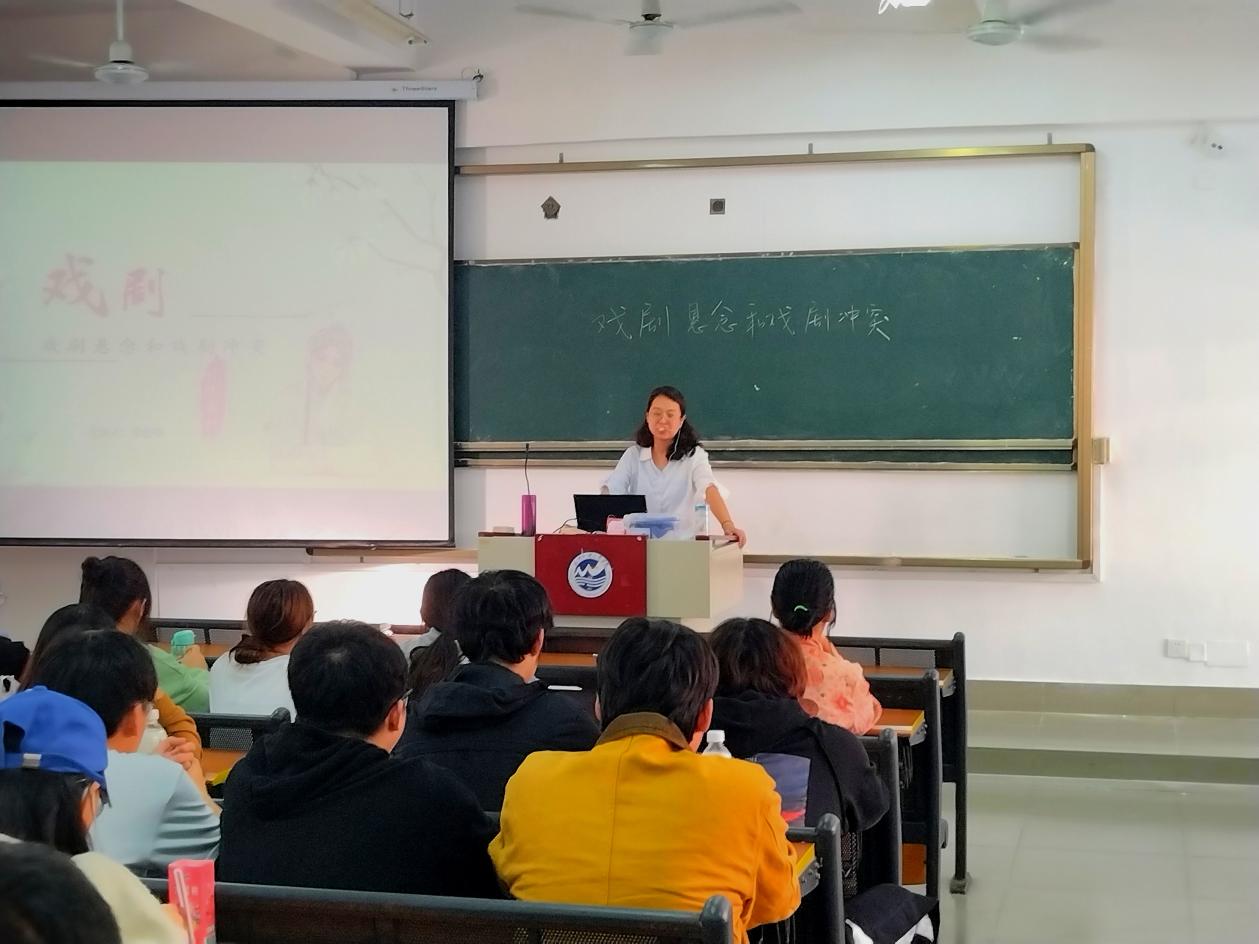 2022年11月29日下午,教育学院汉语言教研室的李舒琼老师在教3401举办了一场面向全体学生的讲座。讲座的题目为《戏剧的悬念和冲突》,借此话题,引领学生一起探讨如何更深入地研究戏剧,对戏剧的悬念和冲突能有更清晰的认识。