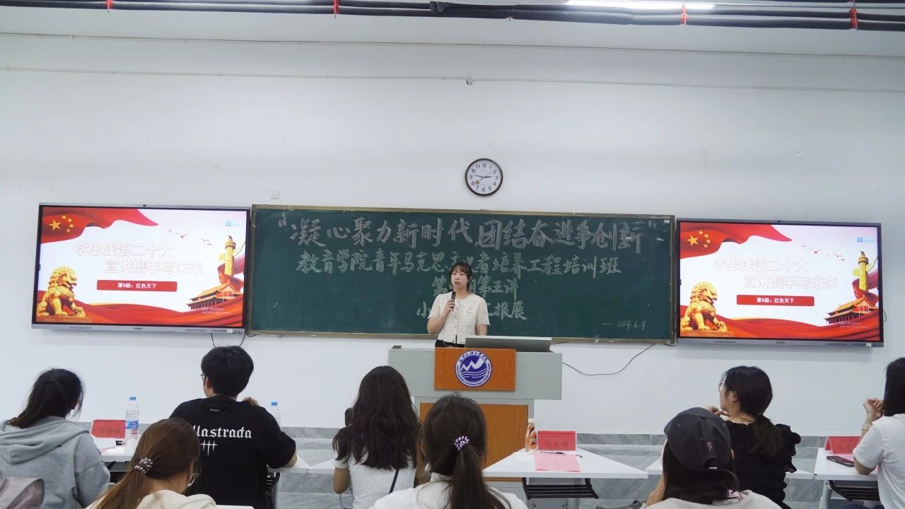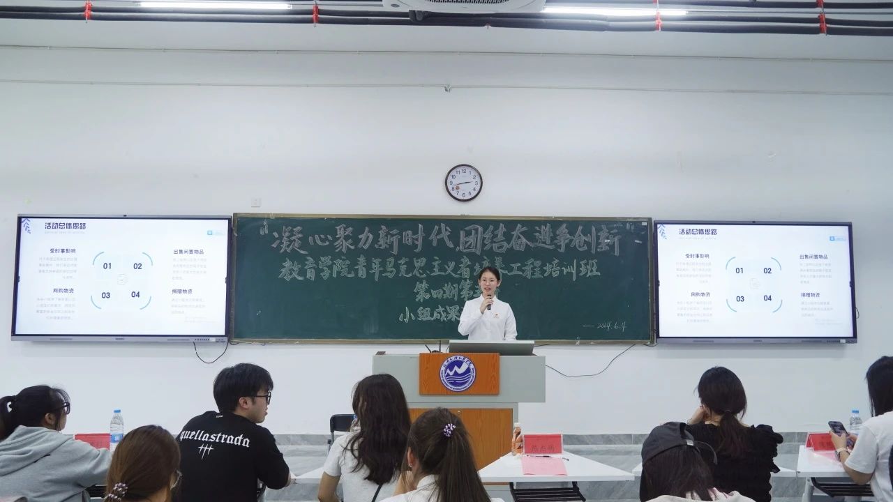 以交流汇报为媒介,赴先进思想之殿堂。本次青年马克思主义者培养工程培训班(第四期)第五讲课程以“凝心聚力新时代,团结奋进争创新”为主题的小组成果汇报展为核心,通过各小组先期准备-分工合作-开展活动-总结汇报的多个活动阶段,多角度展现出学员们团队协作的默契程度和创新能力,进一步激发学员潜能,提高政治思想素养。