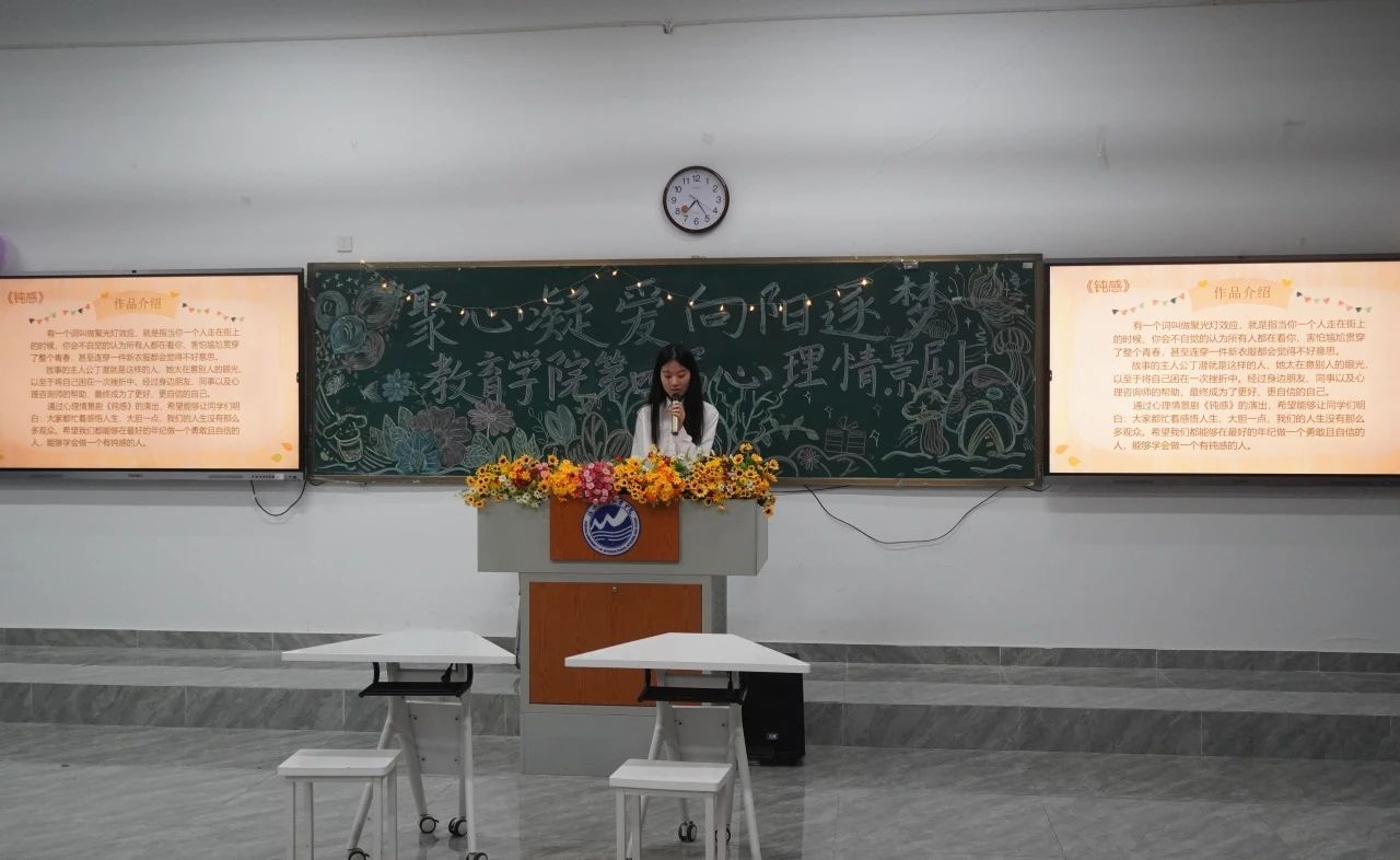 生活如戏,戏如人生,每个角色,都是心灵的投影。情真意切,笑中带泪,在这里,我们将打开心灵的窗,共赏一幕幕生活的诗篇。爱是源泉,梦是翅膀,我们在剧情里翱翔,在故事中,找寻生命的力量,寻找着自己的阳光心理。情绪如波,起伏跌宕,在这舞台上,我们用心触摸那些深藏在心底的情感与梦想。现在请放下世俗的喧嚣,培养并拥有着健康的阳光心理,让我们的阳光心理沐浴在艺术的柔光。随着幕布拉开,故事即将上演,让我们一同走进,这心理世界的殿堂。教育学院第四届心理情景剧表演比赛正式开始,让我们一同来pick自己心目中的“影帝”吧!