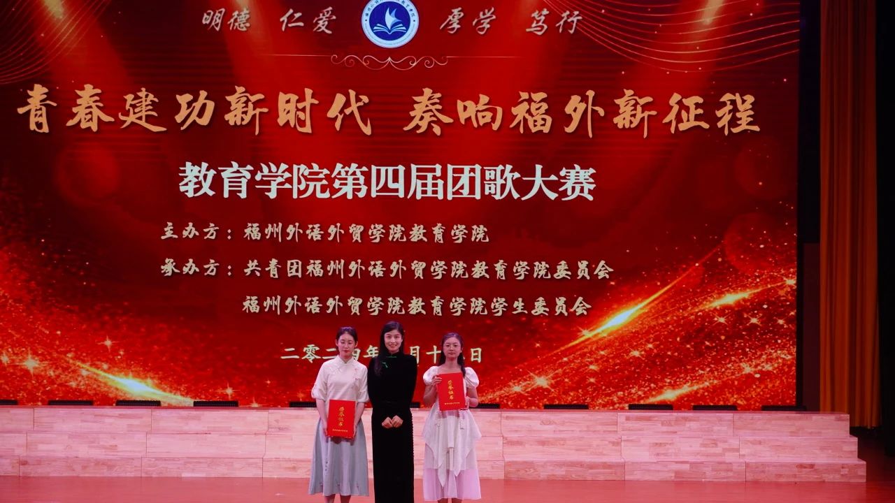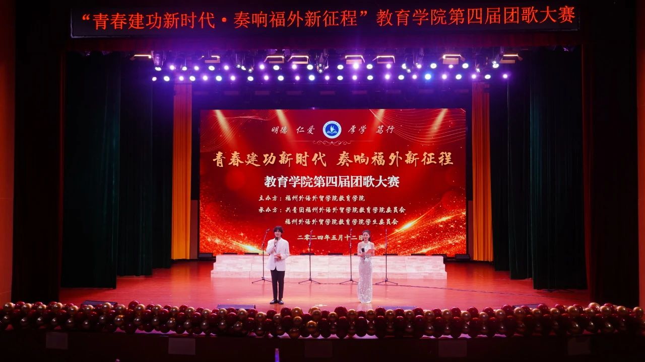 青春心向党,唱响团歌魂。为增强团组织凝聚力,动员和号召广大青年继承发扬“五四”精神,充分展现青年热爱祖国、朝气蓬勃、昂扬向上的精神面貌,2024年5月12日,教育学院在博雅音乐厅举办了第四届团歌大赛。“青春建功新时代·奏响福外新征程”,学子们以青春之名书写清澈挚爱的梦想,以心中之歌献礼腾飞的伟大祖国。