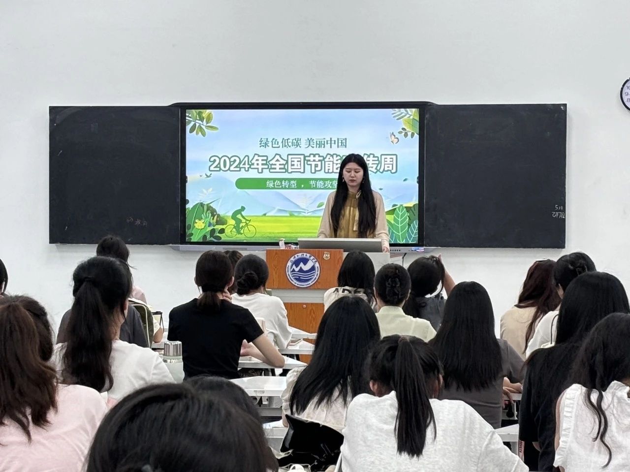 在2024年全国节能宣传周来临之际,为进一步加强教院学子节能环保意识,形成勤俭节约、节约资源的良好氛围,开展节能降碳宣传教育,推动形成绿色低碳生产生活方式。我院于2024年5月12日晚,召开以“绿色低碳,美丽中国”为主题的年级会,由各年级辅导员主讲,学院全体学生参与。