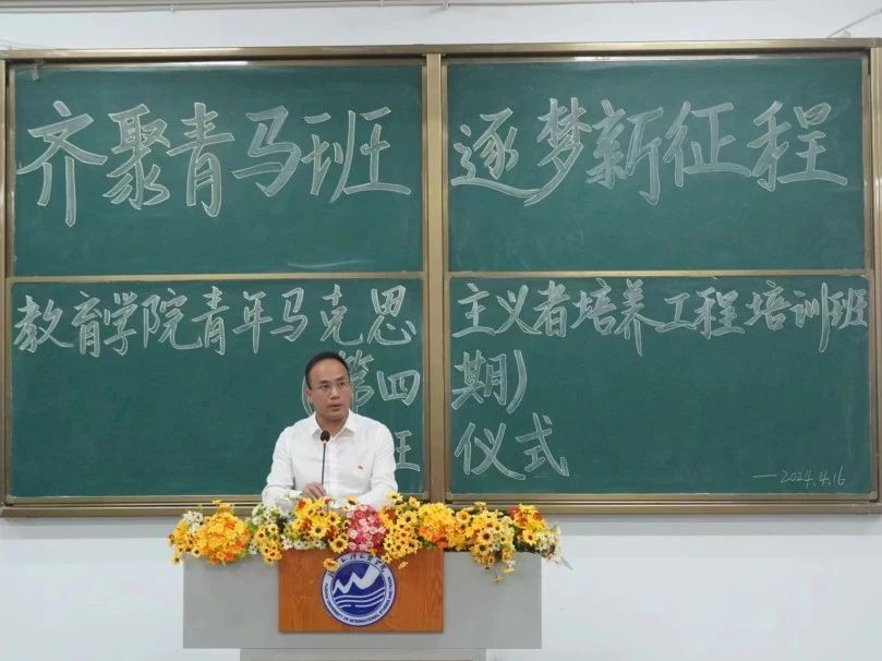 为了深入学习党的二十大精神和习近平新时代中国特色社会主义思想,落实习近平总书记关于青年工作的重要思想,推动实施团中央《“青年马克思主义者培养工程”实施纲要》,深化大学生的马克思主义政治思想教育,完善青年政治骨干培养体系。我院于4月16日在人文楼3-101举行教育学院青年马克思主义者培训班(第四期)开班仪式,学院副院长、分党委书记林业铖副教授,团委书记修丽萍老师,学院全体辅导员以及“青马工程”培训班(第四期)全体成员共同参与,本次活动由团委副书记陈杰明主持。