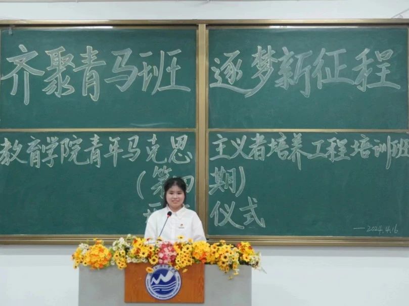 小学教育5班宣传委员陈芃霖代表“青马工程”培训班(第四期)全体学员对学院领导和老师对开展本次培训班给予的支持表示衷心的感谢。她表示,要凝勤学、忠诚、拼搏之心,铸奋斗、信仰、勇气之魂,在未来将继续深化对马克思主义的学习,把马克思主义与实践相结合,把青春投入社会主义建设的事业中。