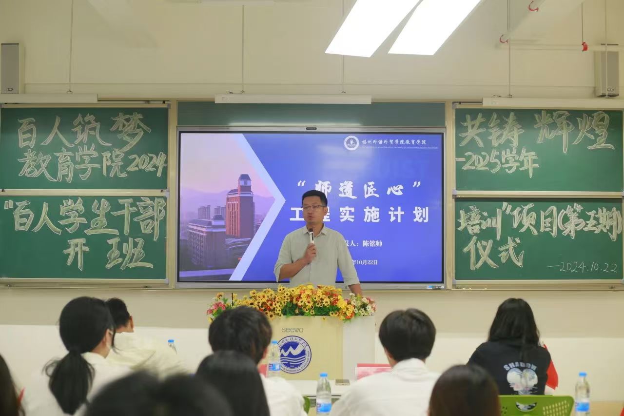 10月22日下午,我院于滨海校区教1-404开展以“百人筑梦,共铸辉煌” 为主题的2024-2025学年“百人学生干部培训”项目(第五期)开班仪式。出席此次仪式的有学院分党委书记、副院长陈铭帅,团委书记修丽萍,团委副书记陈杰明,2024级学生会秘书长姜凤华及全体新任班级学生干部。仪式由学院学生会秘书长田甜主持。