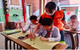 接下来,小队成员们以教育为基,在湖里村开展“周末益课堂”活动,利用闲暇时间与儿童形成“快乐组合”,带领他们在一笔一画之间打磨耐性,培养孩子耐心专注的好习惯。