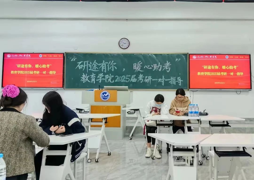 我院高度重视考研工作,并将考研作为落实及促进学院教学质量的重要内容,为切实做好2025届毕业生的考研指导工作,帮助同学们全面地了解考研基础知识,跟进院校选择及专业的动态,进而更好地进行备考规划。4月1日-4月2日我院考研指导老师于人文楼1-203开展了为期两天的“‘研’途有你,暖心助考”的教育学院2025届考研一对一指导会。