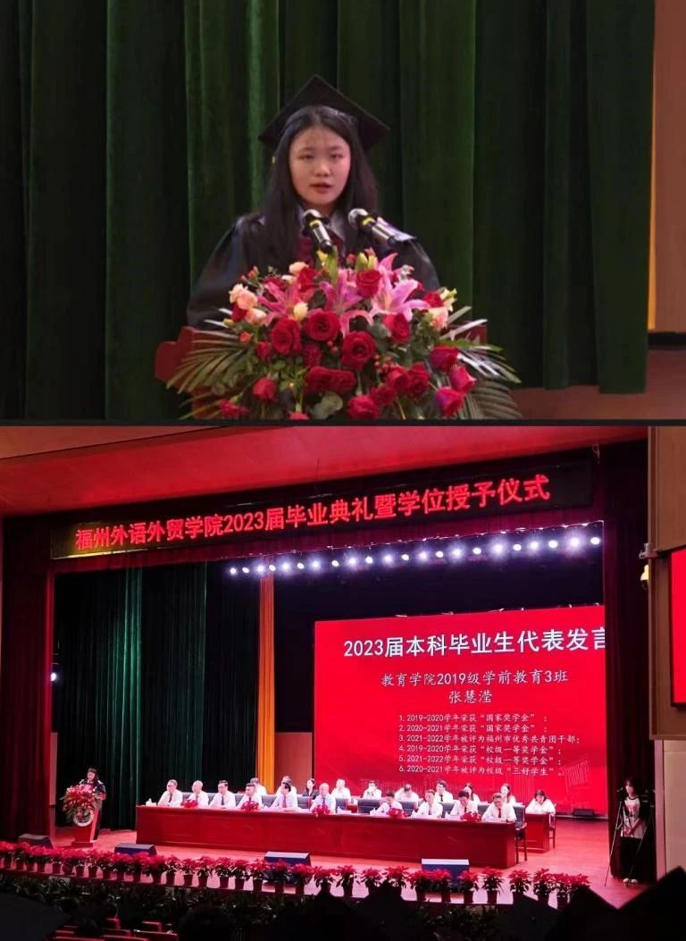 弹指之间,福外四年的青葱岁月如同白驹过隙,从刚踏入大学的青涩到现在慢慢形成的遇事不惊,是她在福外努力学习、锻炼成长的体现。她希望学弟学妹们能尽一切努力使自己保持良好的心态,保持自信心,抓住一切能够提升自己的机会,朝着自己的目标努力前进,在大学的四年里能够不辜负自己,不辜负在前方等着你的光明!