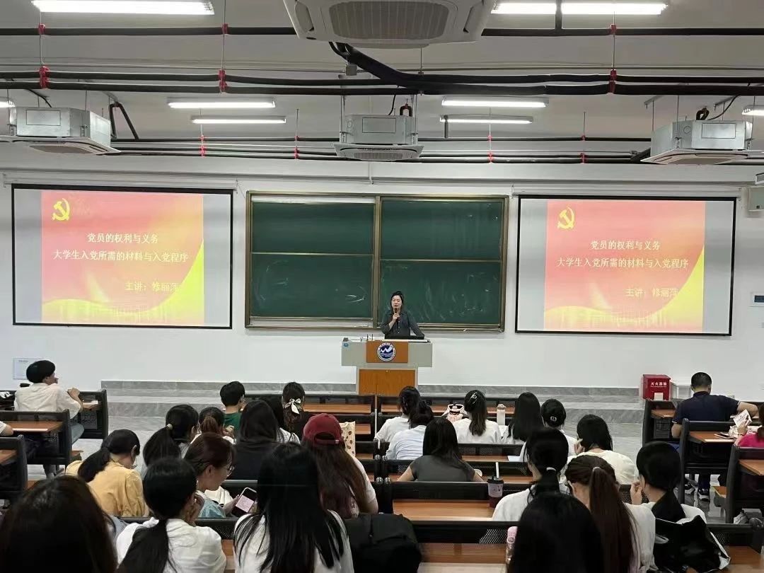 5月13日,教育学院修丽萍老师在人文1-405展开以“党员的义务和权利、大学生入党所需材料及入党程序”为主题的党校培训,让全体学员更加明确党的宗旨、纪律、党员发展流程等相关知识,明晰自身与党员之间的差距,明确接下来努力的目标和方向。