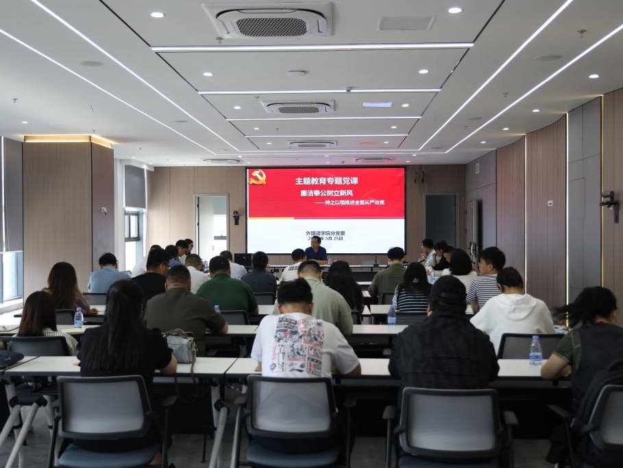 5月25日,我校开展学习贯彻习近平新时代中国特色社会主义思想主题教育读书班专题活动。外国语学院分党委书记、分管学生工作副院长杨惠容以《廉洁奉公树立新风——持之以恒推进全面从严治党》为题,为党员干部讲授...