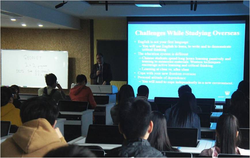 新西兰梅西大学经济与金融学院院长莅校作“新西兰文化与金融”的专题讲座