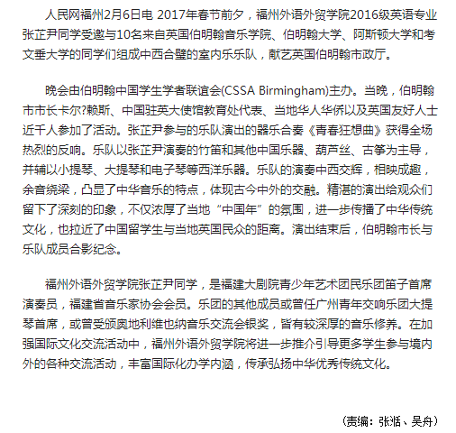 人民网报道:开元网站登录入口学子受邀参演2017年...