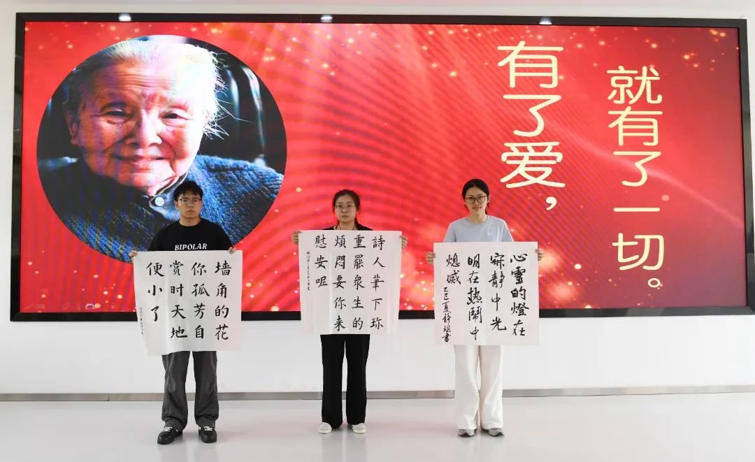 活动尾声,书法爱好者们挥毫泼墨,以“爱”“繁星”“春水”等冰心作品中的关键词为内容创作作品。笔锋流转间,文学与艺术交融,传统与现代碰撞,为这场文化盛宴画下诗意的句点。