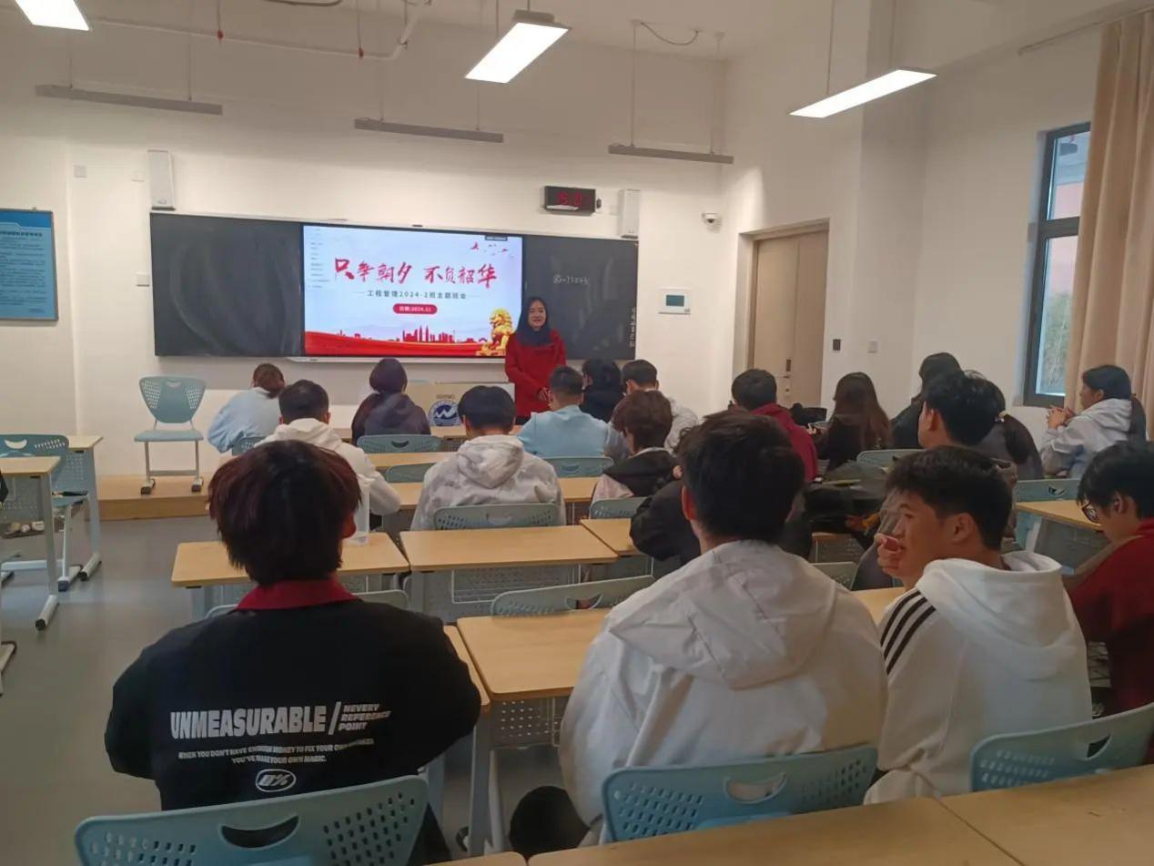 2024年11月26日下午,2024级工程管理2班班导师——土木工程系专任教师陈颖在滨海校区教1-107室开展“只争朝夕,不负韶华”主题班会,2024级工程管理2班全体同学参加。